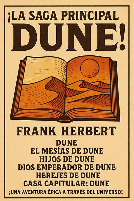 Dune es mucho más que una novela de ciencia ficción: es una saga compleja y fascinante que mezcla política, religión, ecología y filosofía en un universo completamente original. Su creador, Frank Herbert, escribió seis libros entre 1965 y 1985 que forman el corazón de la historia. Estos son los que muchos consideran la saga principal de Dune, y es donde la mayoría de lectores recomienda comenzar.